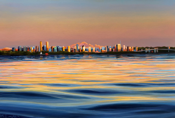 She paints images that speak to the power and majesty of the west coast. Her choice of subjects reflects the environment she has interacted with all her life.